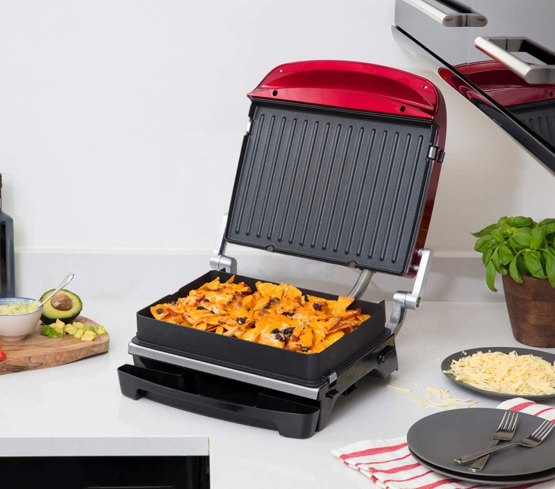- Vaatwasmachinebestendige bakplaat voor meer veelzijdigheid; aan- en uitschakelaar; snoeropwikkeling; receptenboek; 1.440 watt