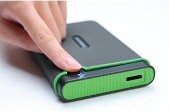 Deze Transcend StoreJet 25M3G externe harde schijf biedt bliksemsnelle gegevensoverdracht via SuperSpeed USB 3.2 Gen 2, tot 10x sneller dan USB 2.0, wat ideaal is voor grote bestanden. Het robuuste drietraps anti-shock design, met een siliconen omhulsel en intern veermechanisme, beschermt uw gegevens optimaal tegen vallen en stoten. Deze schijf voldoet aan de militaire valtestnormen (MIL-STD-810G) en minimaliseert gegevensuitval, zelfs bij impact op de aansluiting. Profiteer van de OneTouch-knop voor snelle back-ups, energiezuinige slaapstand en de meegeleverde Elite-software voor efficiënt gegevensbeheer.